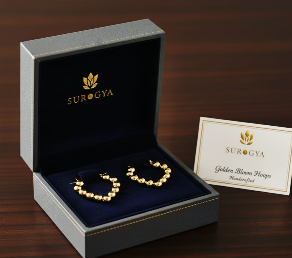 Elevate your everyday style with these exquisite Golden Bloom Hoop Earrings, a handcrafted masterpiece designed to add a touch of subtle sophistication to any look.
