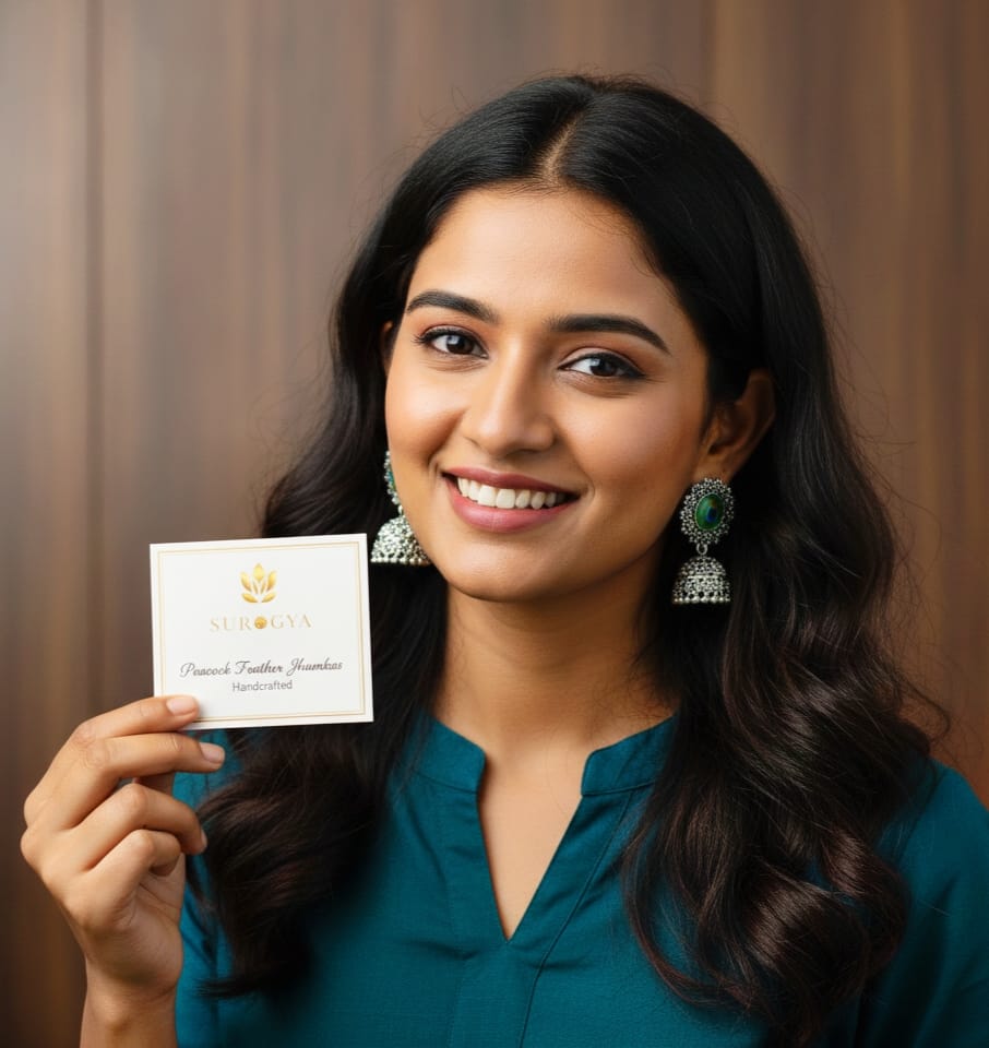 Unveil the exquisite charm of Indian tradition with these beautiful Handcrafted Peacock Feather Jhumkas.
