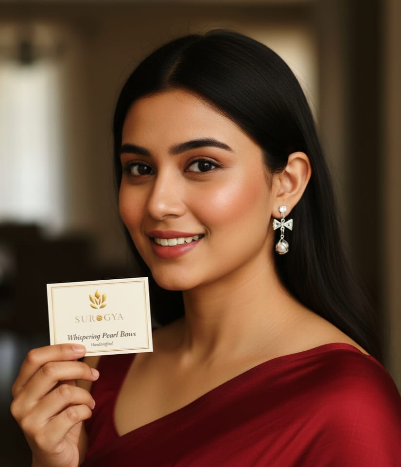 Surogya Whispering Pearl Bows Handcrafted Sterling Silver Drop Earrings